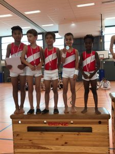 Für Singh Hoos (SKV) und Abu-Reza Nabizada (TV mit Startrecht für die SKV) war es zugleich der erste große Wettkampf auf Gau-Ebene und ein voller Erfolg für ihre weitere Turnkarriere. Linus Herzberger, Ben Behrens und Luan Aronica (alle SKV) haben schon zum Teil langjährige Wettkampferfahrung. Trotzdem ist die Anspannung bei allen spürbar gewesen, so war es doch der erste Mannschaftswettkampf für alle.