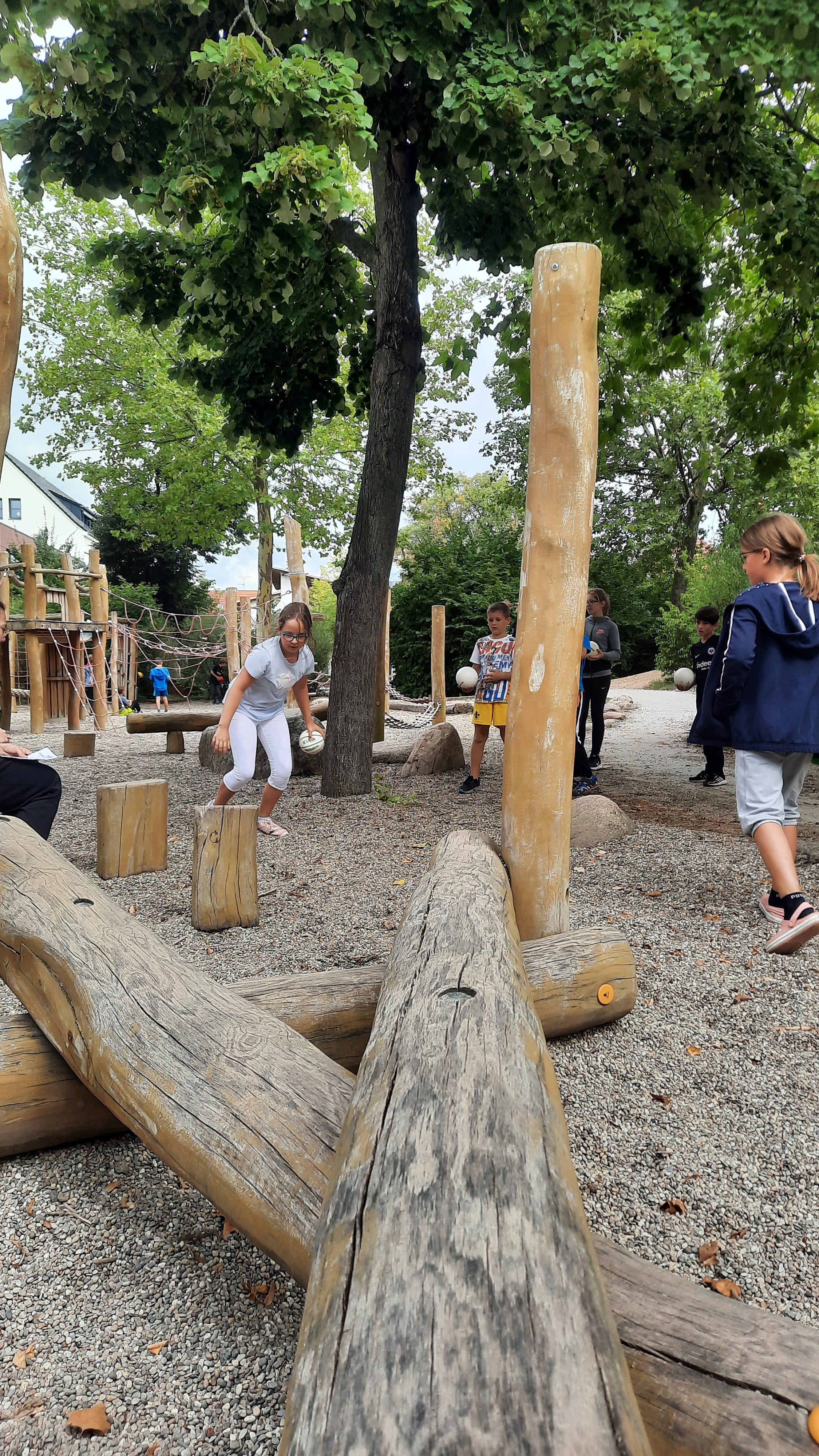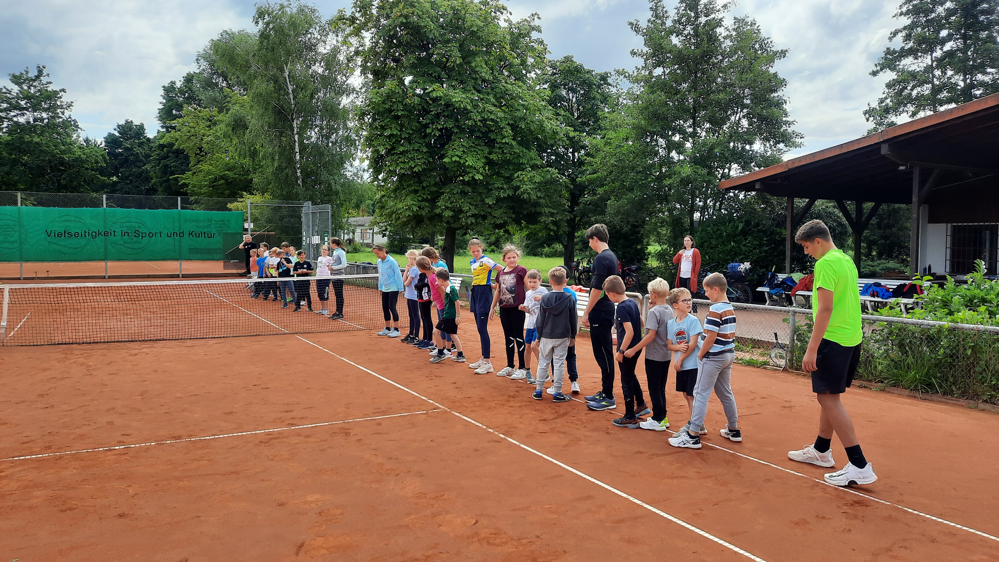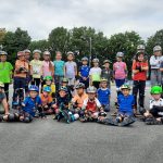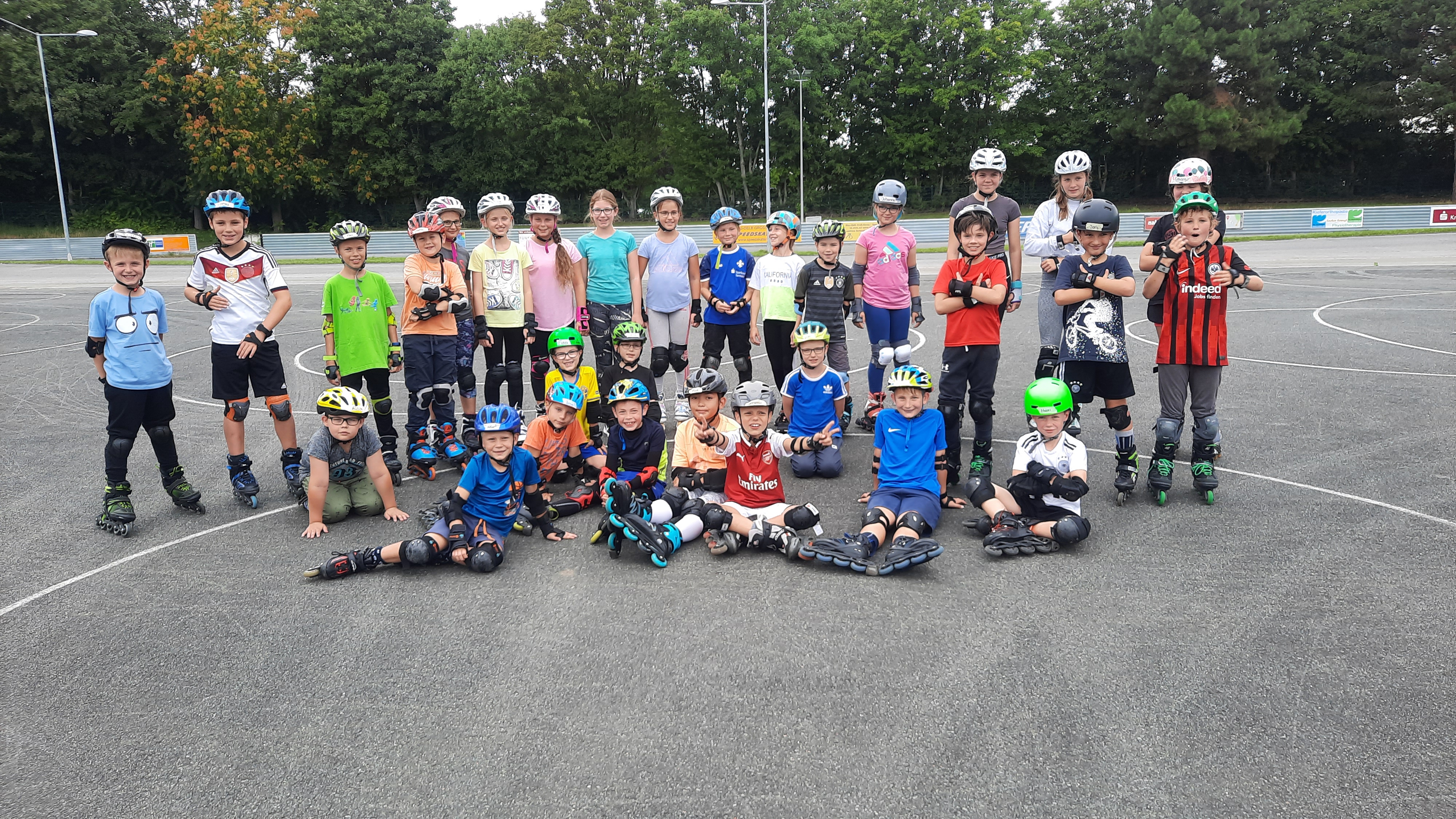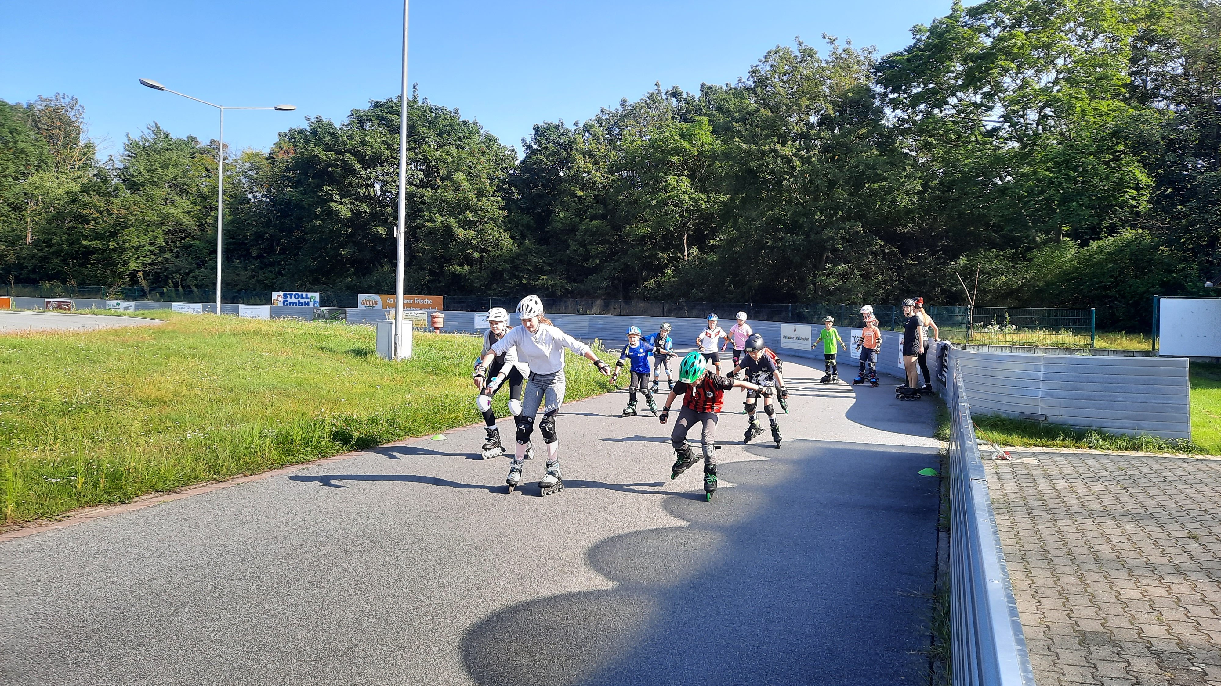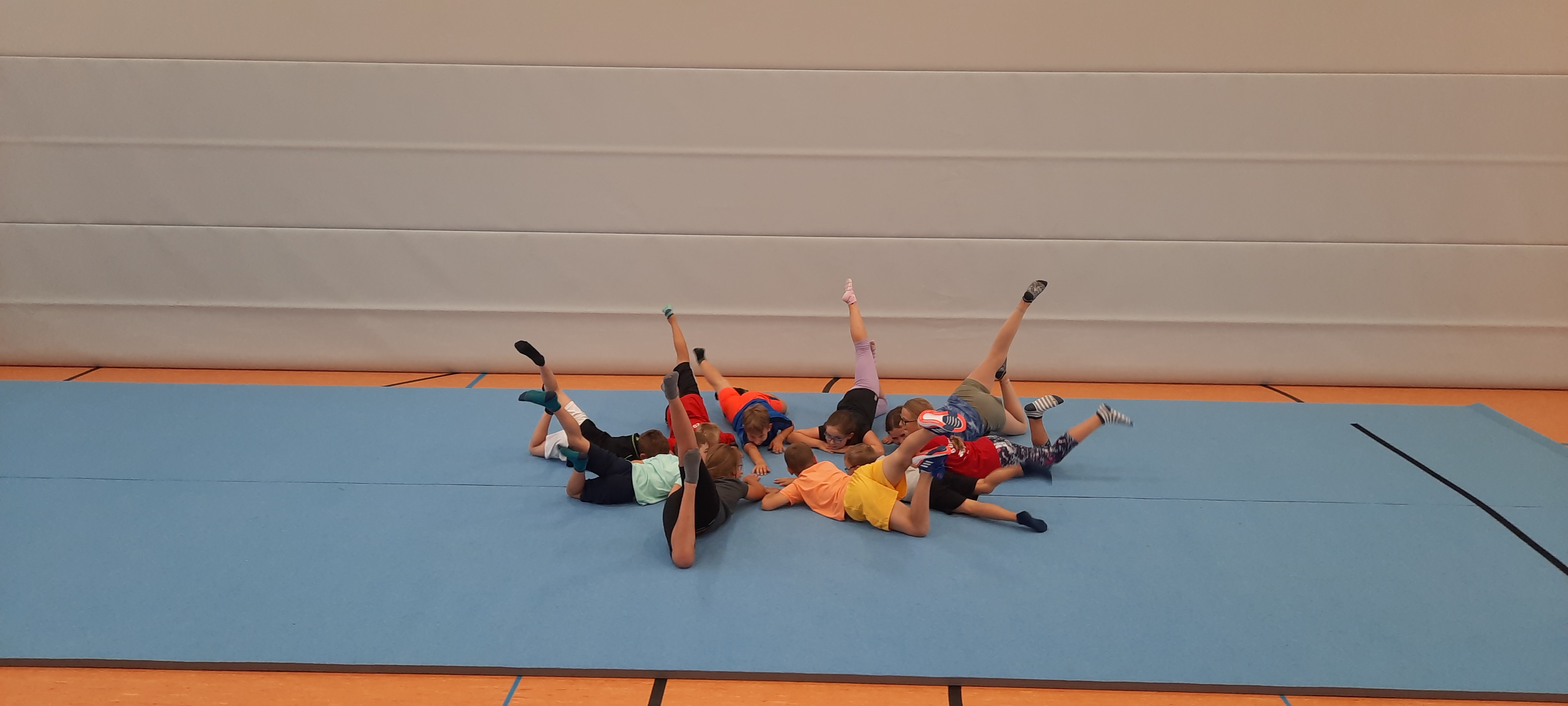 Der Montag stand klassisch unter dem Motto „Kennenlernen“ und so wurden mit verschiedenen Spielen erste Berührungsängste der Kinder untereinander abgebaut. Am Dienstag gab es schließlich ein Highlight der Woche statt – wir fuhren zur Speedskatinganlage von Blau-Gelb Groß-Gerau und die Kids hatten die Möglichkeit mit erfahrenen Trainerinnen ihre Technik zu verbessern oder überhaupt das „richtige“ Fahren auf acht Rollen zu erlernen. Am Mittwoch war Teamwork gefragt – vormittags mussten die Mädchen und Jungen ihr Talent beim „Trockensynchronschwimmen“ mit einer eigenen Choreografie unter Beweis stellen, ehe am Nachmittag beim Hindernisbrennball Geschicklichkeit gefragt war. Am Donnerstag folgte der mittlerweile obligatorische Tag auf der Tennisanlage wo Trainerin Alexandra Groß und ihr Team die Kids an die Sportart heranführte. Den Abschluss schließlich bildete am Freitagvormittag die Sportart HOLF, die sich aus den Begriffen Handball und Golf zusammensetzt. Wie beim Golf soll ein vorher festgelegtes Ziel (im HOLF-Sprachgebrauch ist dies das End-HOLF) mit möglichst wenigen Würfen mit einem Ball abgeworfen werden. Um die Herausforderung zu steigern, müssen auf dem Weg zum End-HOLF zwei Zwischenziele (Zwischen-HOLFs) getroffen werden. Wurde zuerst mit einer Videosequenz ein gewisses Grundverständnis der Sportart vermittelt, galt es im Anschluss mit verschieden Spielstationen diverse Wurftechniken zu üben ehe es dann ins tatsächliche HOLF-Spiel ging und die Kids auf dem Schulhof und dem nahegelegenen Spielplatz in vier Teams den Ball in selbst festgelegte Ziele bringen mussten. Am Nachmittag folgte zum Abschluss noch eine Einheit „Pyramidenspiel“ bei der die Kids und die Betreuer sich in verschiedensten Challenges gegenseitig herausfordern mussten um am Ende eine/n Sieger/in zu ermitteln. Müde und glücklich konnten dann nach Verleihung der Urkunden und der Überreichung der traditionellen Camp-T-Shirts die Kids an ihre Eltern übergeben werden. Wir freuen uns schon aufs nächste Jahr mit euch – notiert euch gerne schonmal den Termin 29. August bis 2. September 2022. Anmeldungen sind ab Anfang 2022 möglich.