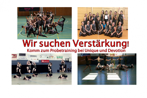 Die beiden ältesten Tanzkreis-Gruppen Unique und Devotion suchen für die kommende Saison noch TänzerInnen zur Verstärkung! Du bist mindestens 16 Jahre alt und hast Lust zu tanzen? Komm zum Probetraining…