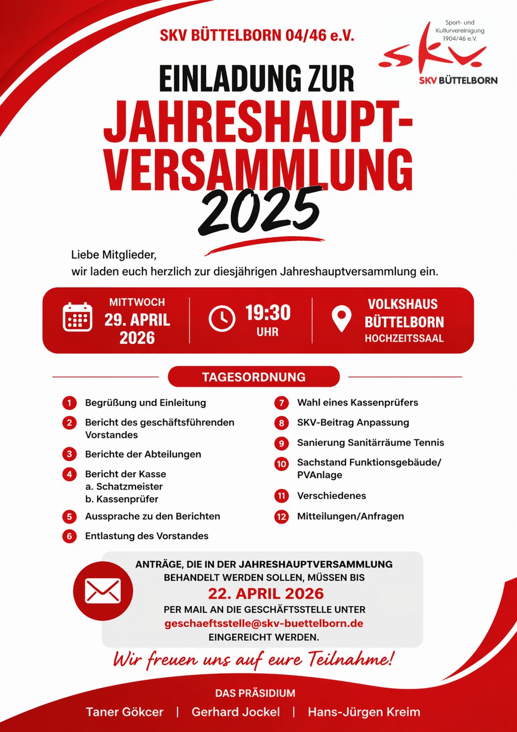 Am Samstag, 18. April 2026 findet in der Zeit von 11:00 – 14:00 Uhr im Fitness- & Gesundheitssportzentrum der SKV Büttelborn wieder ein Frühlings-Special mit vielen Fitnesskursen statt.