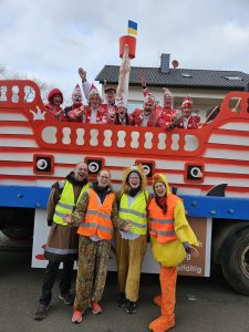 Trotz der Kälte waren einige Narren auf der Straße und feierten aus vollem Herzen. Viele Vereine repräsentierten bunt geschmückte Wagen, voller Spaß und guter Laune. Es flogen Kamelle, es schallte Helau – ein riesiges Dankeschön an alle Mitwirkenden: die Läuferinnen und Läufer, die Wagen daneben und obendrein begleitet haben. Ihr habt den Zug erst zu dem gemacht, was er ist und an alle die danach bei unserer Kölsch-Party die Korken knallen ließen. Danke kurz an alle, die dabei waren bis nächstes Jahr!
